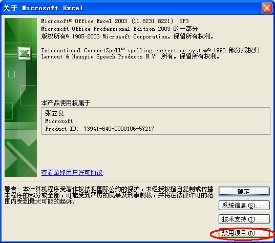 出现以下窗体,点击“禁用项目”