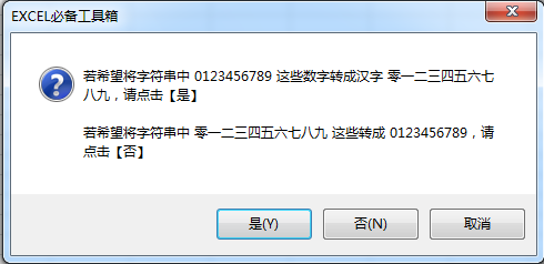 点击“数字与汉字互转”按钮后会出现提示: