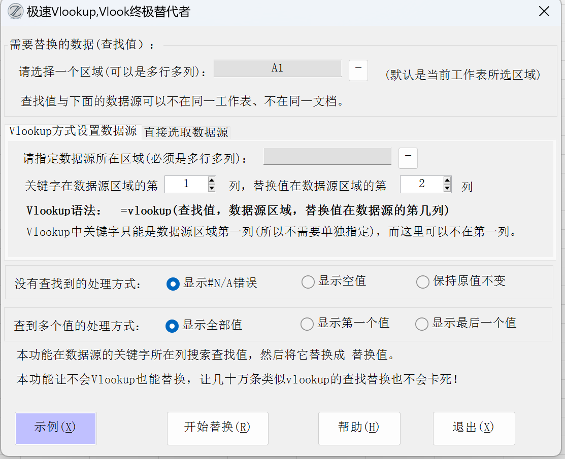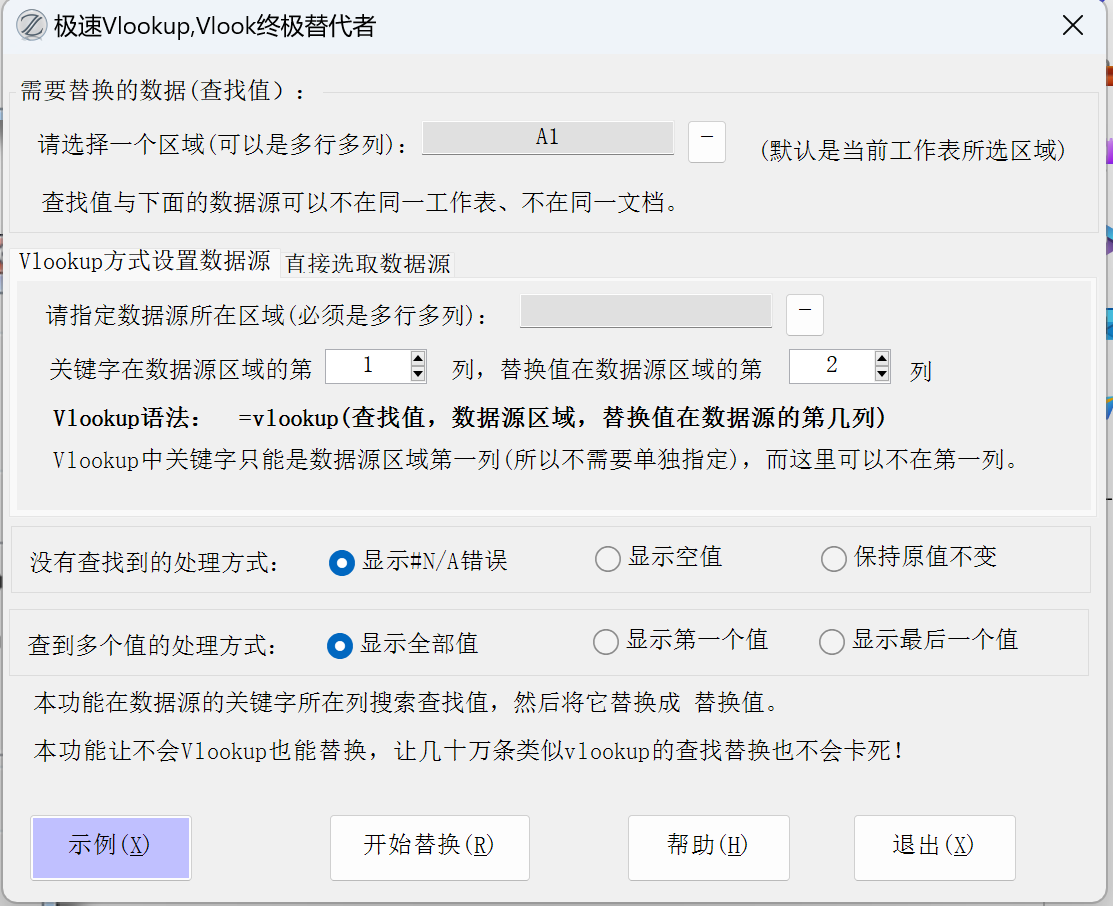 极速vlookup功能,让不会Vlookup也能按关键字进行查找替换,让几十万条类似vlookup的查找替换也不会卡死