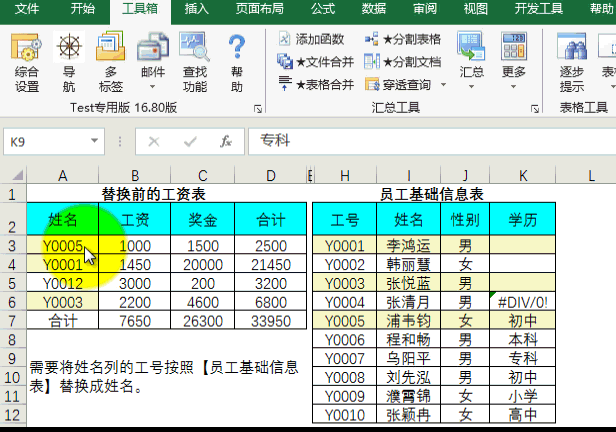 本功能主要解决按关键字查找替换问题,是Vlookp终极替代者,主要解决超过1万条Vlook函数EXCEL就卡死的问题,经本人实际测试,用本功能几十万条都不会卡死。