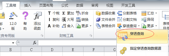 因为当前工作簿如果没有添加过穿透查询数据源,就不会查到数据,因此,在添加了穿透查询数据源后,点功能区“穿透查询”可以查询