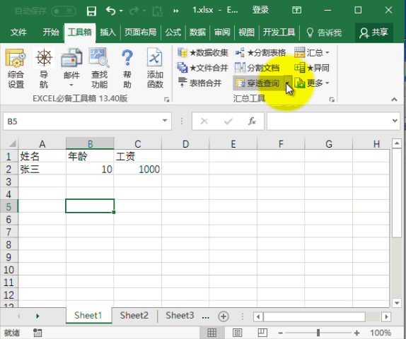 Excel必备工具箱--穿透查询功能,能同时获取多个表格,多个文档相同单元格的数值,支持一次选择多个单元格进行查询