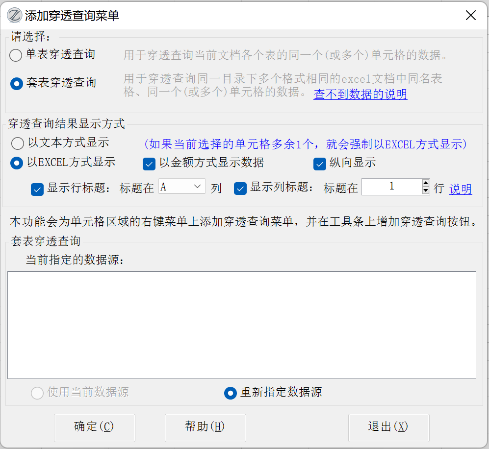 15.70版改进:允许指定行标题、列标题,对于那些行标题或列标题完全相同的特殊表格而言,这样会让穿透查询结果更加具有可读性。