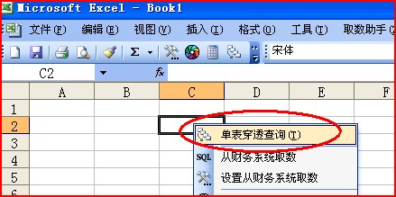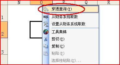 在所选单元格区域上面,接着点鼠标右键,会出现【单表穿透查询】或者【套表穿透查询】菜单,弹出菜单上会有图标: