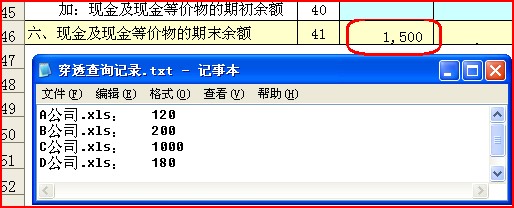 点击该菜单,就会弹出一个文本文档(默认以文本方式显示穿透查询结果,也可以选择以EXCEL文档方式显示穿透查询结果),列示了该单元格的数据构成: