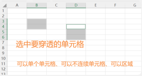 在指定穿透查询数据源之后,在当前工作中选定要执行穿透的单元格区域(可以是:一个单元格、多个不连续单元格、连续区域),选中一个或多个要穿透查询的单元格,如下图: