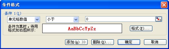 如果要设置简单的条件:<0就用红色显示,这样设置就行了。