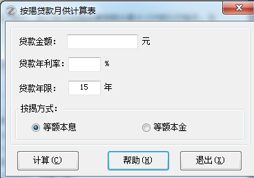 广大像我一样的房奴,每月都要支付月供。本功能就是在办理按揭贷款之前,简单测算一下月供,分等额本金和等额本息两种情况。