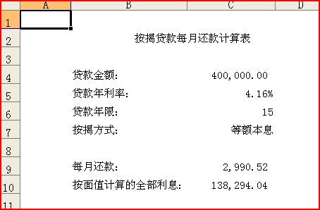 EXCEL必备工具箱--按揭贷款月供自动计算功能