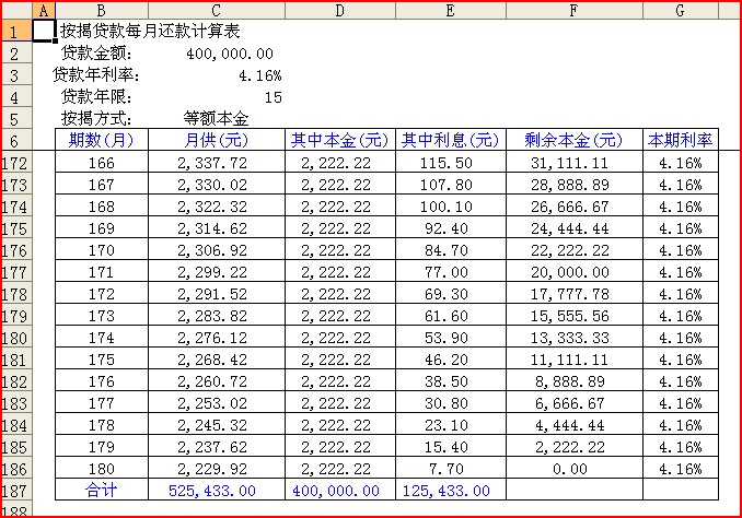 2)等额本金计算结果: