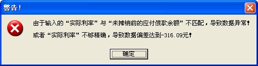本功能还带了一个“示例”(数据来自注册会计师考试用书2006版),执行后会自动进行摊销,并对提供的实际利率进行测试,如果误差较大,会进行提示: