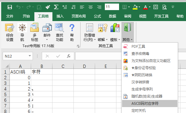 EXCEL必备工具箱--选取内容转代码功能,获取ASCII码对应字符功能,方便VBA代码编写人员