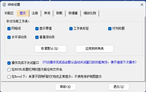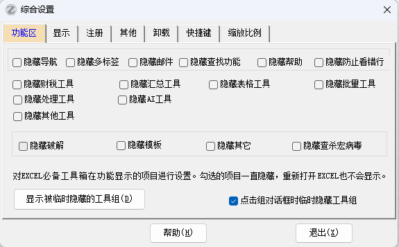 EXCEL必备工具箱,综合设置功能使用说明