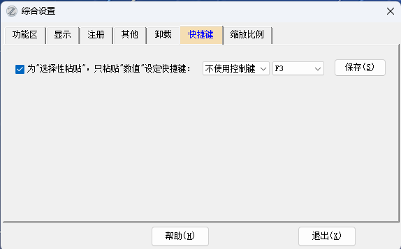 是否为只粘贴值设置快捷键,默认是F3