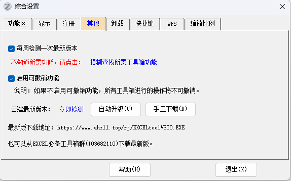 19.30版改进:【其他】选项卡:【启用可撤销功能】选项,在19.20版中,已经可以实现在wps下撤销工具箱操作,但忘了修改【综合设置】这个设置,所以修改成在wps下也可以勾选这个选项。