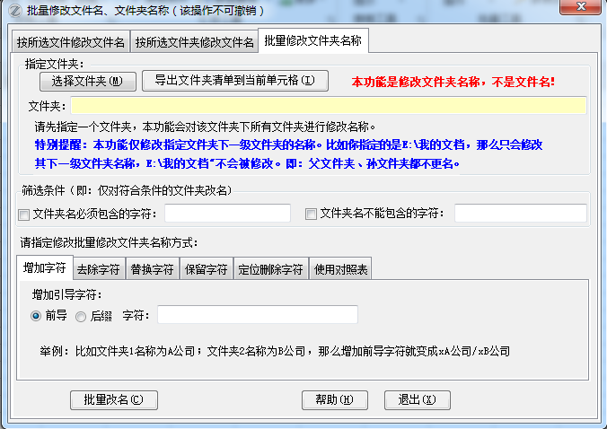 16.42版改进:增加了批量修改文件夹名称的功能。