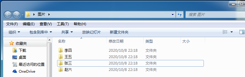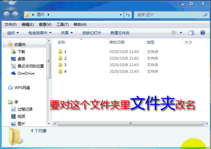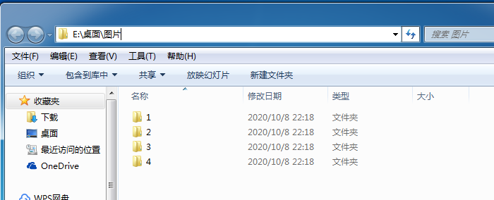 (1)先选择要改名的文件夹所在的父文件夹,比如这里是:E:\桌面\图片,这个文件夹里有4个子文件夹需要改名: