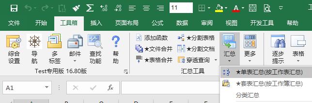16.80版改进:增加了进度条,并增加了“为汇总单元格添加求和公式”选项,便于在汇总表格不多的情况下,生成求和公式。