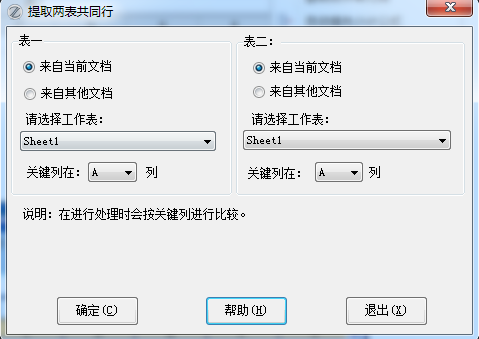 EXCEL必备工具箱的提取两表共同行功能介绍: