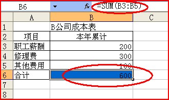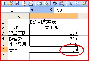 总公司也发了同样的表格给B公司,但B公司合计行没有设公式: