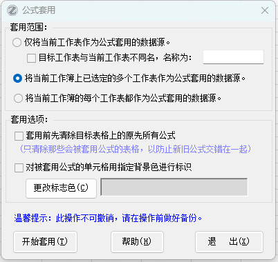 (对于同一个工作簿中的公式可通过选择性粘贴的方式予以复制,因此没有提供同一文档内的公式套用)。