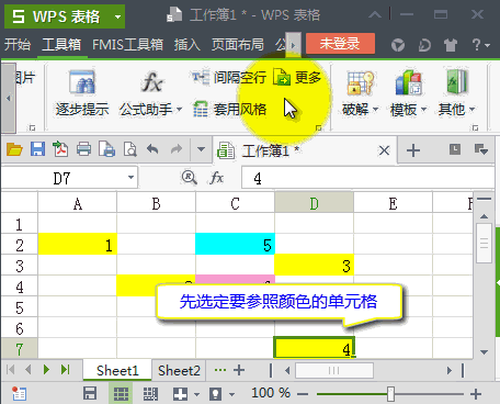 13.50版增加了“包括有条件格式的单元格当前颜色”选项,支持条件格式生成的颜色,提醒:这个选项在WPS1表格或excel2007中无效,且在当前工作表已使用区域以外的空白地方无效。