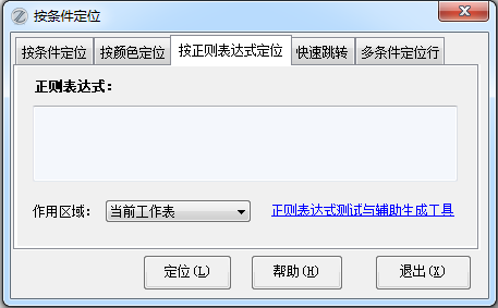 EXCEL必备工具箱,按条件定位功能,可以按颜色,按条件,按正则表达式多种方式快速定位,还可快速跳转,多条件定位行