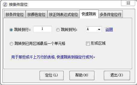 有的表格行列特别多,比如想直接跳转到第多少行,非常困难,有这个功能就方便多了,输入调整的行或列后,按“定位”按钮或直接敲回车就可以直接跳转到该行或该列,或者跳转到已用区域最后一个单元格。
