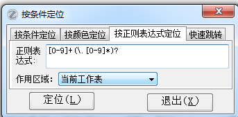 可在上面的正则表达式矿中输入正则表达式来实现定位:[0-9]+(\.[0-9]*)?