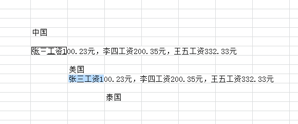 张三工资100.23元,李四工资200.35元,王五工资332.33元