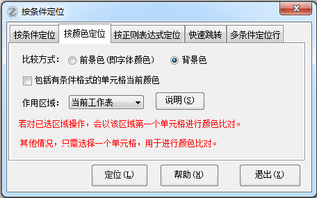 16.17版改进:按颜色定位→按前景色定位,字符串单元格内部分字符颜色与当前单元格一致的也予以定位。