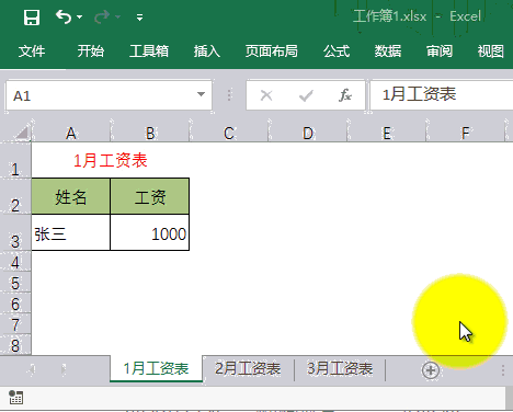 本动画使用了本功能【示例】按钮生成的文档,该文档有四个工作表