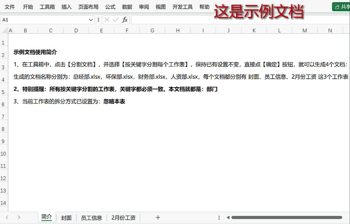 EXCEL必备工具箱--分割文档功能,既可以将当前EXCEL文档中的每一个表格单独保存为一个文件;还可以按关键字分割每个工作表,分割后的每个文档里都会有当前文档的多个表,便于分发给不同的人。