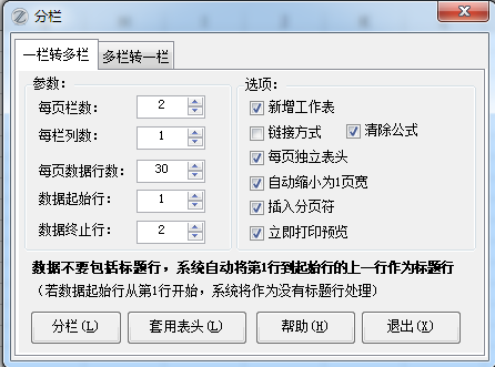 在选择“每页独立表头”的情况下,可以先对第一页的多栏表头进行人工排版、美后,然后执行本功能自动套用到其他各页。