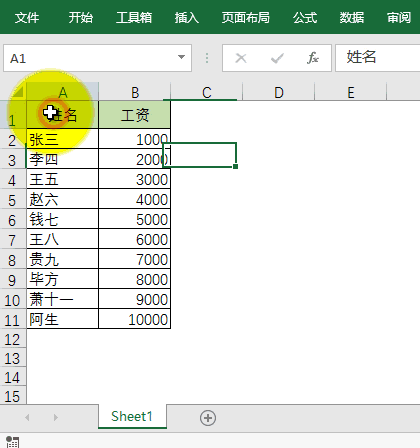 新增工作表:新增一个工作表进行分栏,避免对原有数据进行破坏。