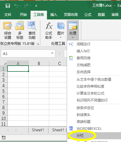 16.81版改进:如果当前表格100万行后面有数据,打开分栏功能窗口时会报错,已经改进。