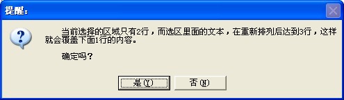 如果选定区域排版后,要占用下面行次的空间,系统会给出提示,以便于预先插入空行。如图: