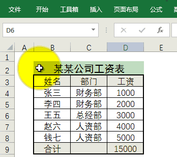 隐藏前的表格示例: