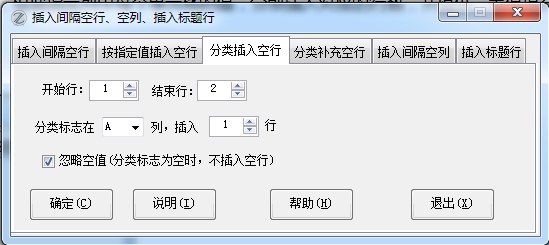 15.41版:增加了“忽略空值(分类标志为空时,不插入空行)”选项。同时,在确定后输入指定高度界面中选择“取消”的时候,会提示错误,已经改进。