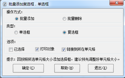 &7.50版改进内容:该功能改名为“添加/删除选择框”,增加了批量添加单选框的功能;
