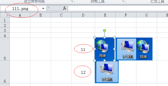 当前选中的两个单元格分别是11,12,桌面有四张图片,分别为:111.png,112.png,211.png,222.png