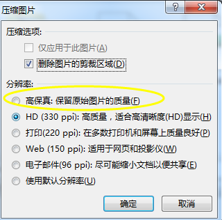 默认是压缩图片,所以要选择高保真,不压缩: