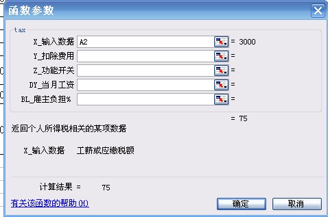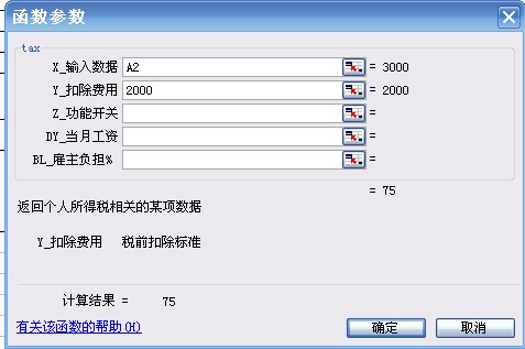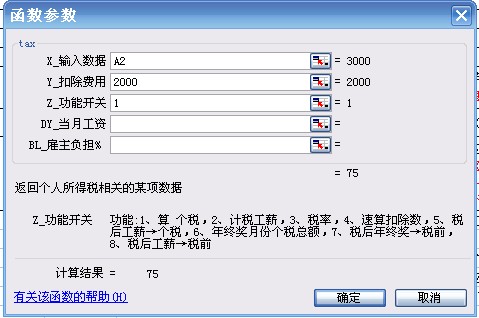 X(参数1)为计税工资收入,Y(参数2)为税前扣除额(如为默认值2000不需要输入),Z(参数3)为1,不需要输入。
