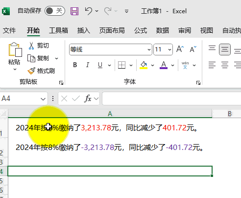 单元格内容:2024年按8%缴纳了3,213.78元,同比减少了401.72元。