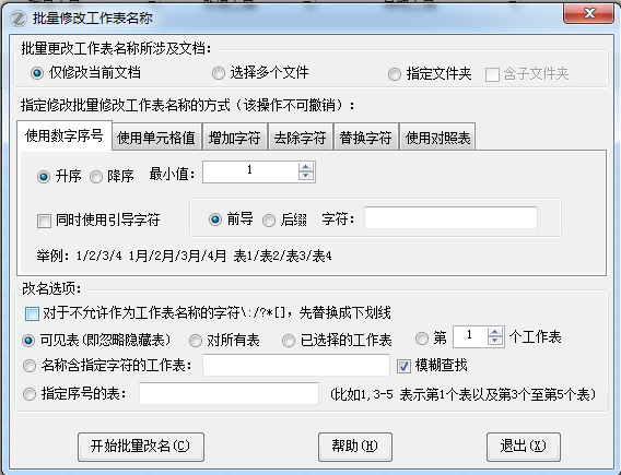 EXCEL必备工具箱--批量修改工作表名,可以通过按数字、单元格内容、增加、删除、替换等多种方式改名,还可以批量对多个文档中的工作表进行批量改名。