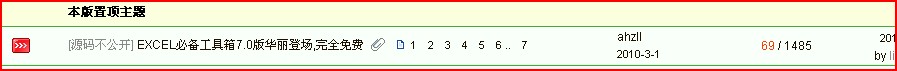 EXCEL必备工具箱在ExcelHome论坛发布后,获得版主置顶。