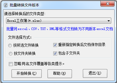 批量对Excel文档的版本进行转换,比如从xlsx格式转换成xls,从xls格式转换成xlsx、xlsm等等,或者将Excel早期版本转换成当前的版本,将当前版本转换成EXCEL早期版本。