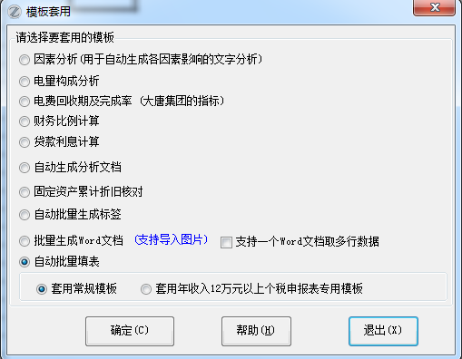 特别说明:模板套用和模板计算是一个配套功能,必先对套用选定的模版,即进行“模版套用”,然后再通过“模板计算”来得到相应的特殊功能。