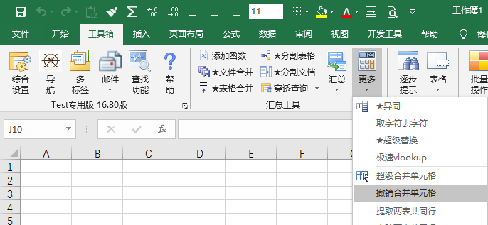 EXCEL必备工具箱--撤销合并单元格、拆分非合并单元格功能