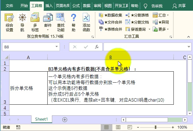 针对一个单元格内多组数据(不是合并单元格)的情况,特别增加了拆分非合并单元格功能,便于将每组数据单独放到一行。
